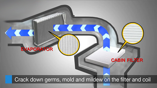 강력한 스팀으로 차안 곳곳에 침투하여 유해 세균과 냄새를 제거합니다.